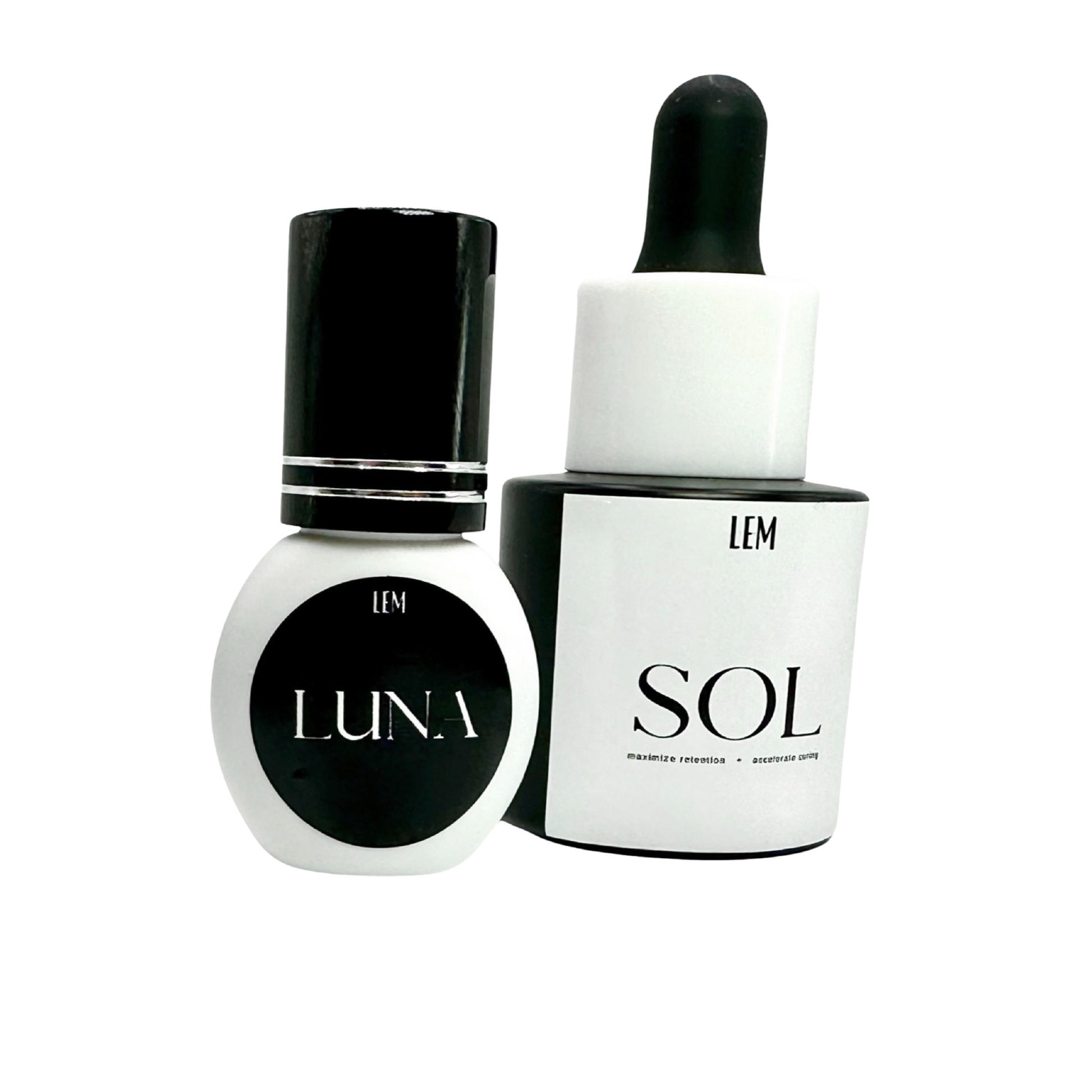 Increase your lash retention with the ultimate “Retention Duo”. This set includes our fast drying and wide range humidity “Luna”adhesive and our “Sol” bonder known for curing any adhesive in seconds, getting rid of any fumes!